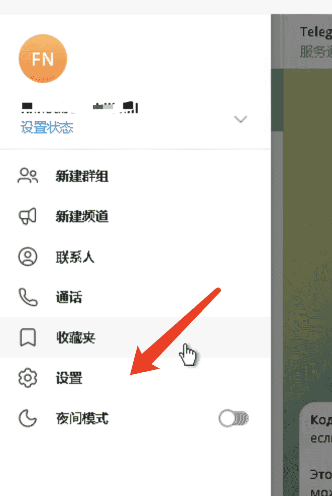 1、先登陆telegram账号点击菜单——三条杠那个地方